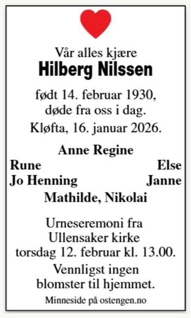Æresmedlem Hilberg Nilssen gikk bort 16. januar 2026